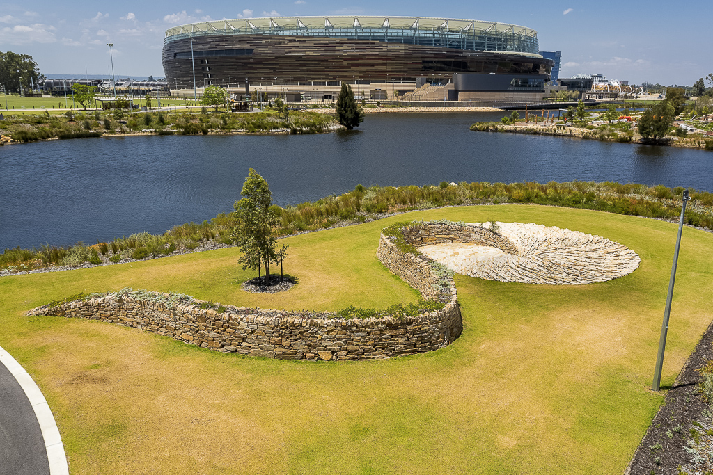 A Legacy in Bronze, Light and Sound Funded through the State Government Percent for Art Scheme (three artworks) and private sponsorship from BHP and Chevron (12 artworks through Land.Mark.Art), the project demonstrates end-to-end delivery capability from cultural consultation and artist development through to fabrication and installation. The stadium stands as proof that when government, industry and community collaborate, public space can honour Country while serving millions of visitors each year.