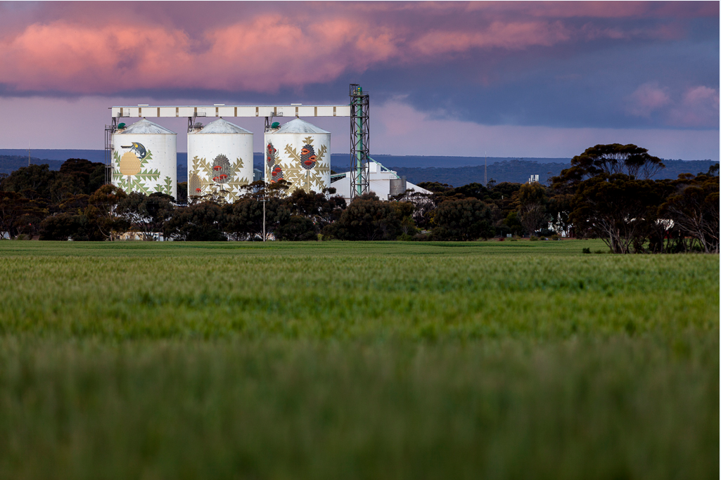 Art about the Wheatbelt and the Great Southern! On the farmland panorama of Western Australia’s southern regions, visible for miles: a regional legacy of FORM’s PUBLIC festival (2014-2016) of urban art.